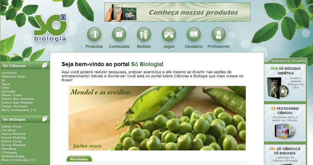 Só Biologia também oferece provas de vestibular, simulações, exercícios, biografias de grandes cientistas, glossário biológico, jornal e fórum de discussão.