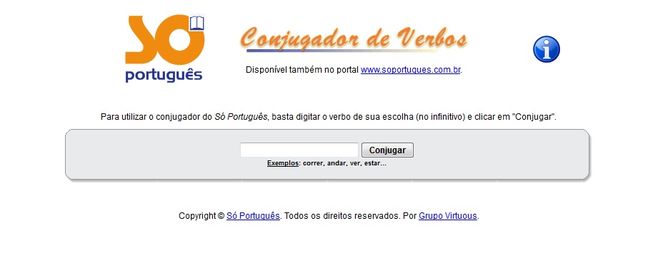 Conjugador do site Só Português, utiliza a gramática do português brasileiro.