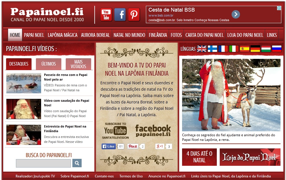 É o site oficial do Papai Noel, com muitos vídeos, fotos e histórias.